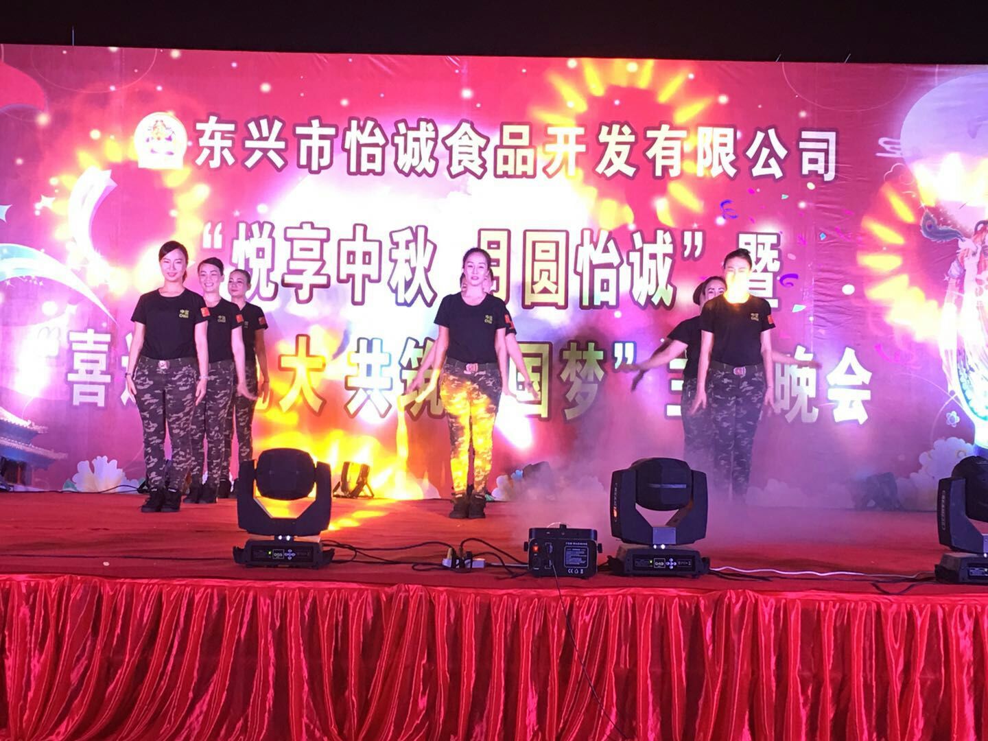 2017-10-07 來源: 東興市怡誠食品開發(fā)有限公司皓月批云紗, 粉雨如蜜潤,9月30日晚,涼涼深秋里融入絲絲溫情—“悅享中秋 月圓怡誠 暨喜迎十九大 恭祝中國夢“主題晚會在怡誠食品廠區(qū)東側(cè)廣場盛大舉行。緊隨主持人開幕致辭,先后約二十余個精彩節(jié)目登臨怡誠中秋晚會的廣闊舞臺,共計500余人出席,現(xiàn)場氣氛熱烈,規(guī)模空前龐大。