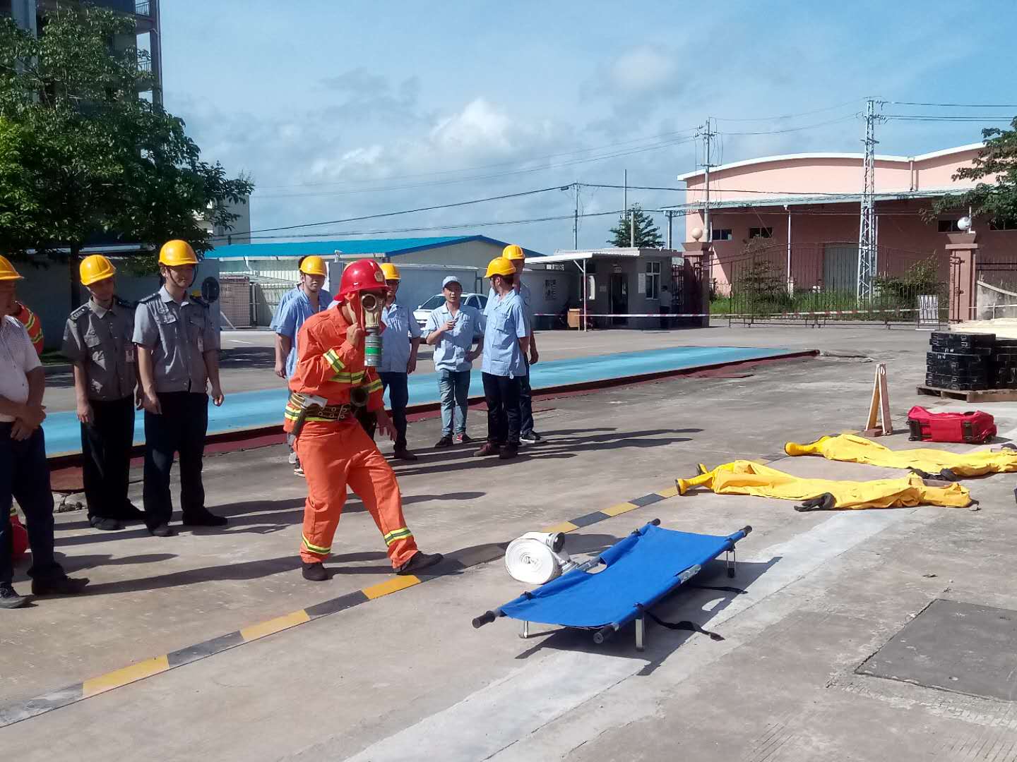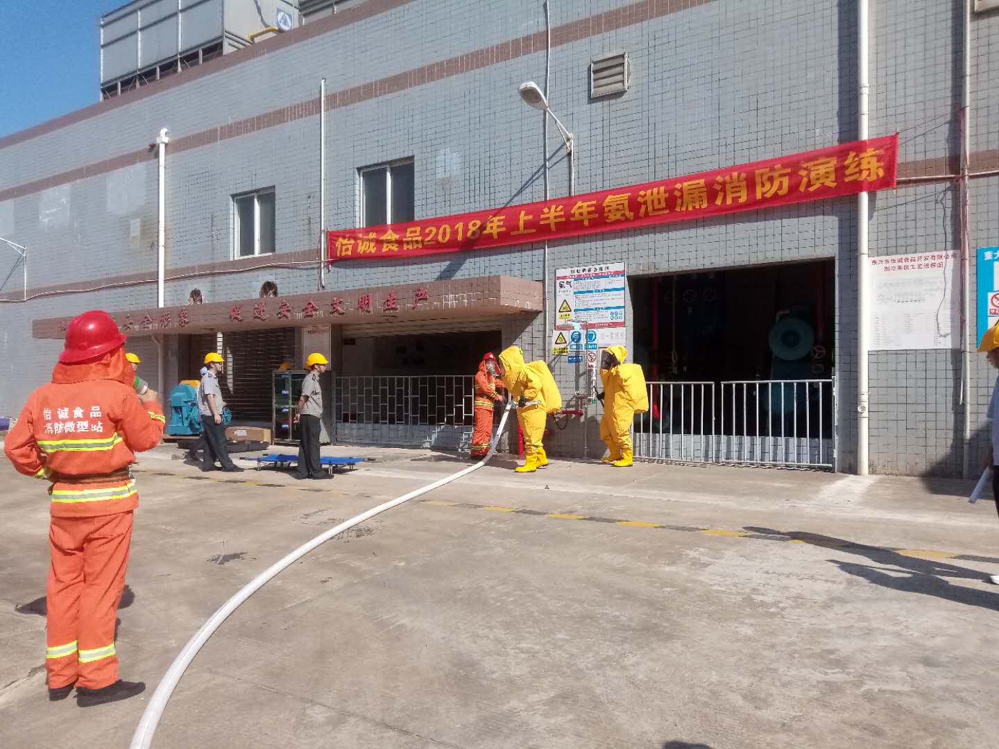 5月20日,由公司安全負責(zé)人、總經(jīng)理辦公室下發(fā)方案,企業(yè)黨支部動員,安全環(huán)保工程部組織,氨制冷動力部門,人事行政部門,后勤安保應(yīng)急隊伍協(xié)助聯(lián)合舉行的大型液氨泄漏消防救援應(yīng)急演練取得了顯著的效果。演練活動針對液氨泄漏處理,消防搶險救援,應(yīng)急隊伍協(xié)作機動性,人員疏散組織四個重點,進行了高標(biāo)準(zhǔn)的強化訓(xùn)練。演練過程中安全環(huán)保工程部根據(jù)現(xiàn)場狀況臨時加入突發(fā)事件元素,鍛煉應(yīng)急隊伍的緊急應(yīng)變能力。對防化服、空氣呼吸器穿戴、滅火器具、各類消防器材使用等方面,不僅要求應(yīng)急隊伍能有效準(zhǔn)確地運用器材,而且操作反應(yīng)速度要達到設(shè)定的標(biāo)準(zhǔn),對器材的使用熟練性進行了嚴(yán)格的考驗。