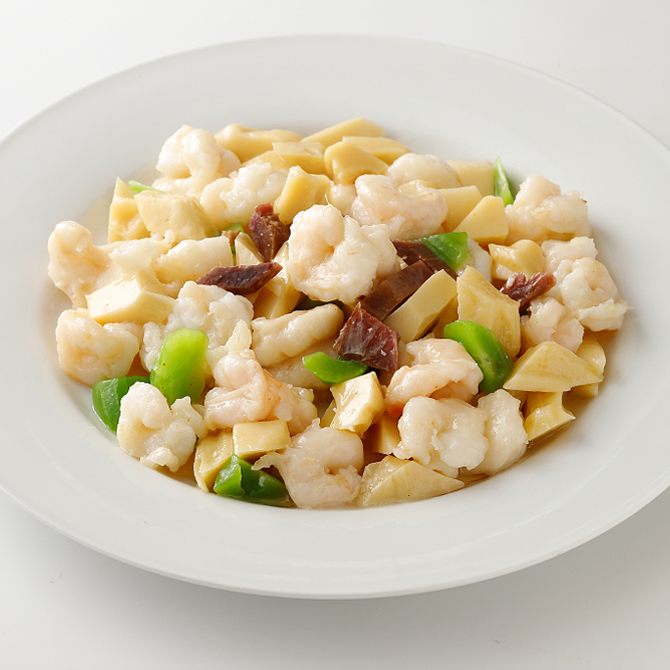 配料:怡祥牌燒汁鮑魚罐頭、蝦仁、紅蘿卜、西芹、馬蹄