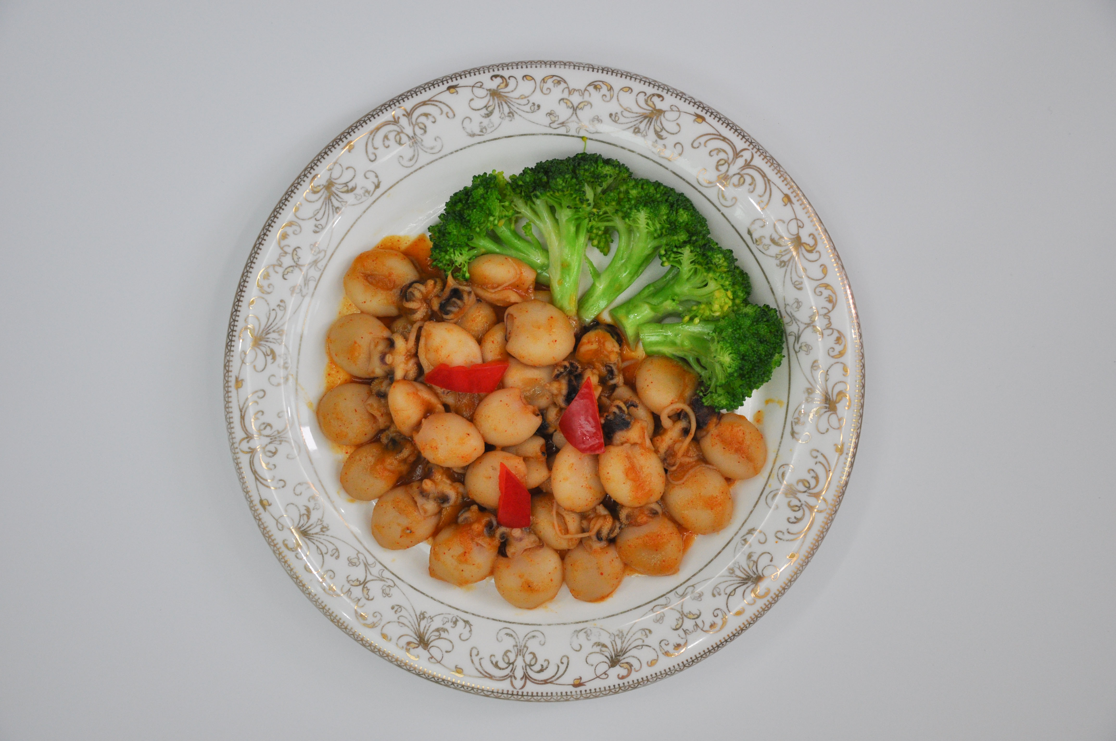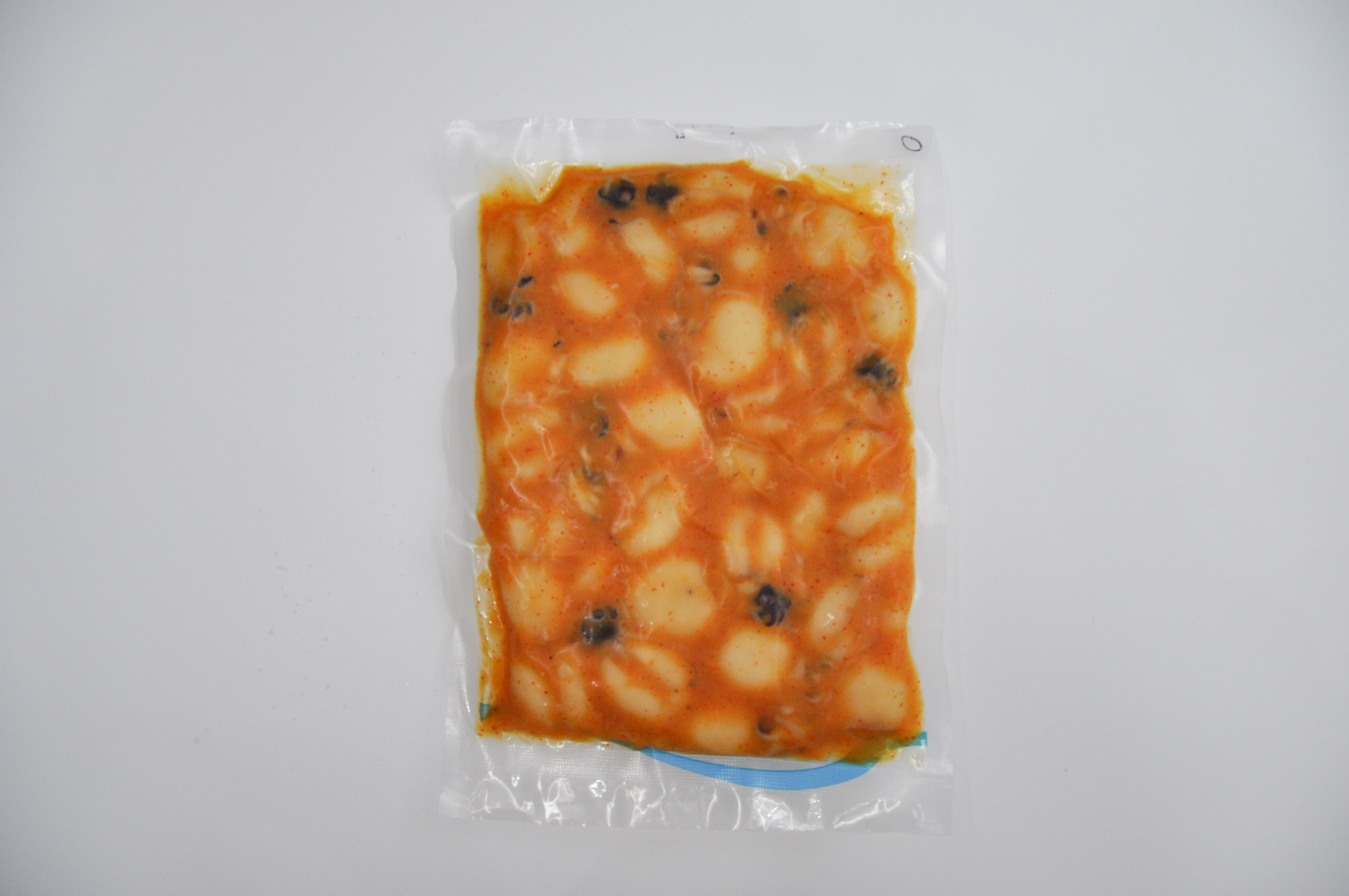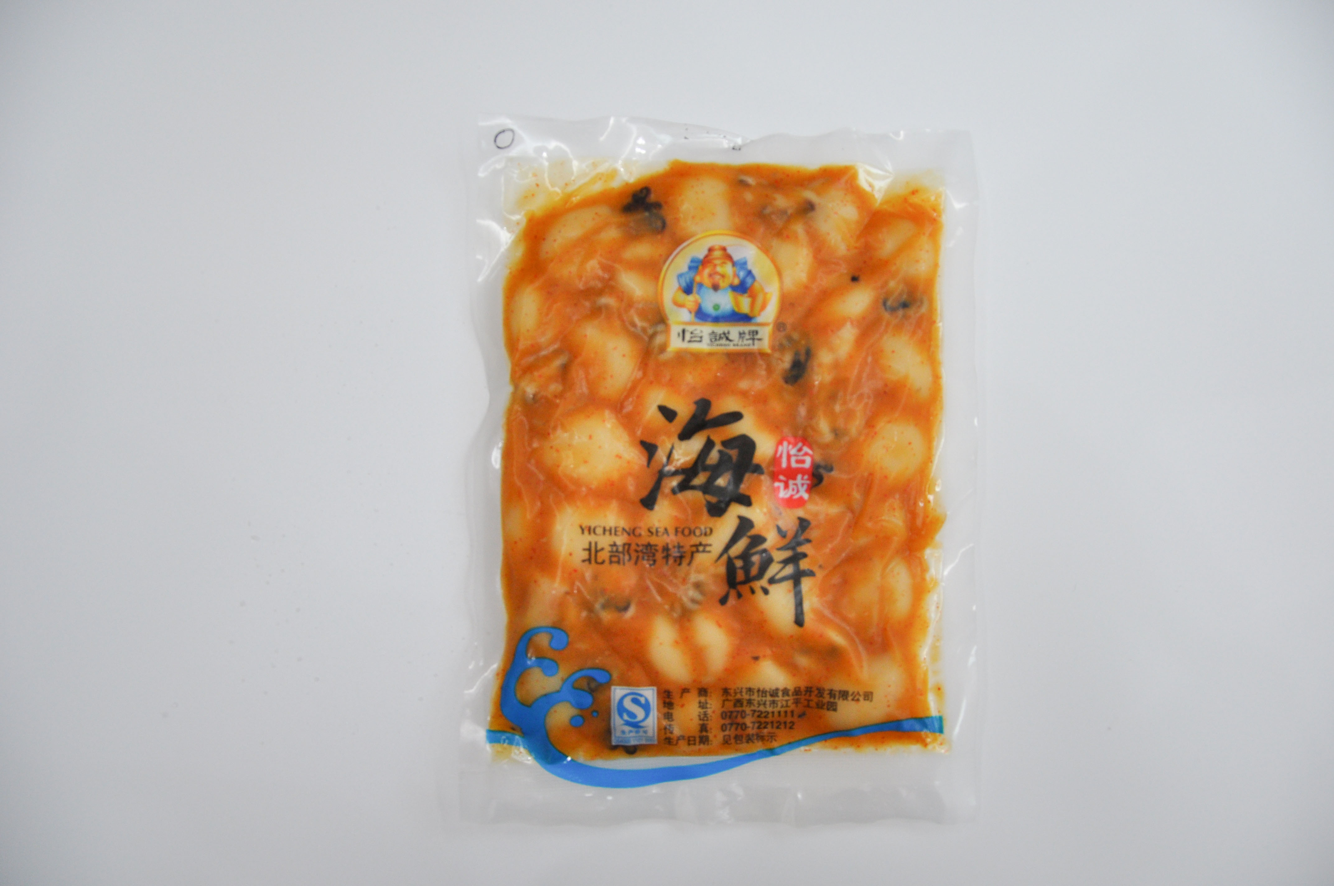 圓墨魚(yú)口感鮮脆爽口,肉汁滋潤(rùn)豐富,通透清新,具有較高的營(yíng)養(yǎng)價(jià)值。本產(chǎn)品選用北部灣海域捕撈的鮮活墨魚(yú)為原料,運(yùn)用專(zhuān)業(yè)冷鏈物流運(yùn)輸設(shè)備,把鮮墨魚(yú)迅速地運(yùn)送到潔凈的生產(chǎn)車(chē)間內(nèi),由專(zhuān)人細(xì)心清洗,修剪,再以清湯溫和灼煮,隨后加入到鮮辣稠軟的特制醬料內(nèi)調(diào)味。經(jīng)調(diào)煮的小墨魚(yú)在冷凍加工設(shè)備短時(shí)間的急速冷卻下,再次收縮成型同時(shí)將稠滑的醬汁充分地吸收在肉質(zhì)內(nèi),使加工后的墨魚(yú)條條水靈紅潤(rùn),魚(yú)肉辛脆爽辣,滑嫩晶瑩,醬汁綿密細(xì)膩,豐美如膏脂,滋味非常。產(chǎn)品用途廣泛,食用方便快捷,既可解凍后作為冷盤(pán)食用,又可加熱調(diào)煮各式菜肴,風(fēng)味別致。