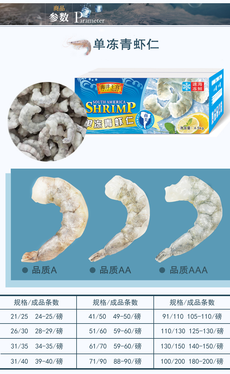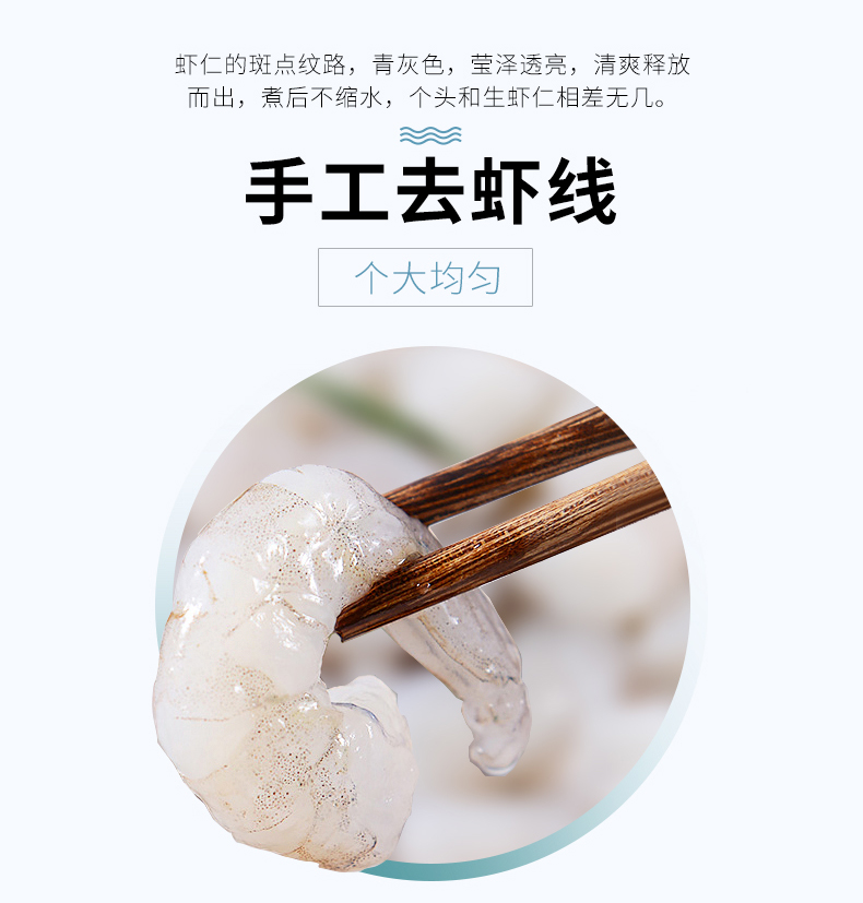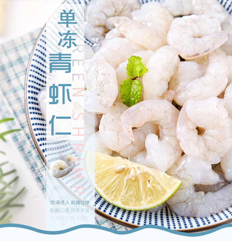 南美白對蝦原產(chǎn)于南美洲太平洋沿岸海域,大多數(shù)棲息于泥質(zhì)海底,生長發(fā)育條件優(yōu)異,體內(nèi)營養(yǎng)豐富。南美白對蝦外表呈青灰色,蝦殼薄而蝦肉飽滿,肉質(zhì)鮮美并且含肉率高,因而深受人們喜愛,是餐桌上常見的海鮮菜肴。本產(chǎn)品選用北部灣海域捕撈的鮮活白對蝦為原料,運用專業(yè)冷鏈物流運輸設(shè)備,把白對蝦迅速地運送到潔凈的生產(chǎn)車間內(nèi),專業(yè)處理去頭去殼,并以完善的冷凍保鮮技術(shù)和嶄新的高端流水生產(chǎn)線進(jìn)行生產(chǎn)加工,使白對蝦仁能在新鮮狀態(tài)下加工成為速凍產(chǎn)品,最大限度地保存了鮮活白對蝦的鮮美品質(zhì)。