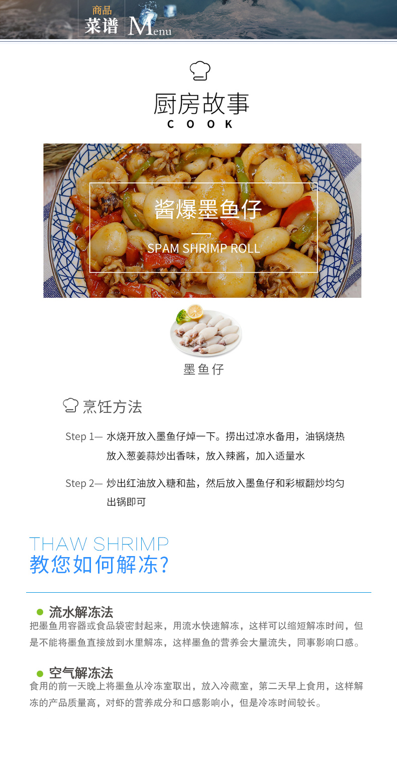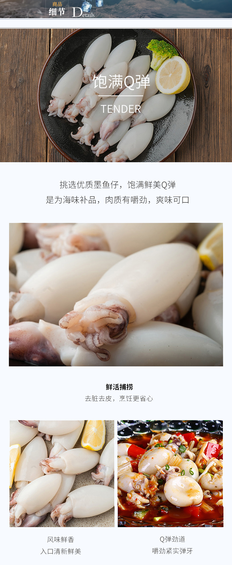 墨魚口感鮮脆爽口,肉汁豐富,具有較高的營(yíng)養(yǎng)價(jià)值,是一種高蛋白低脂肪的滋補(bǔ)海產(chǎn)食品。本產(chǎn)品選用北部灣海域捕撈的鮮活墨魚為原料,運(yùn)用專業(yè)冷鏈物流運(yùn)輸設(shè)備,把墨魚迅速地運(yùn)送到潔凈的生產(chǎn)車間內(nèi),由專人細(xì)心清洗,修剪并去除內(nèi)臟,并以完善的冷凍保鮮技術(shù)和嶄新的高端流水生產(chǎn)線進(jìn)行生產(chǎn)加工,使墨魚能在新鮮狀態(tài)下加工成為速凍產(chǎn)品。加工后的墨魚條條圓潤(rùn)飽滿、色澤鮮亮潔白,肉質(zhì)富有彈性,水靈欲滴,保留了鮮活墨魚的鮮美品質(zhì)。